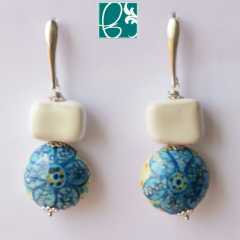 Orecchini in ceramica di Caltagirone a forma di brocca,sulla quale sono decorati degli splendidi fiori .